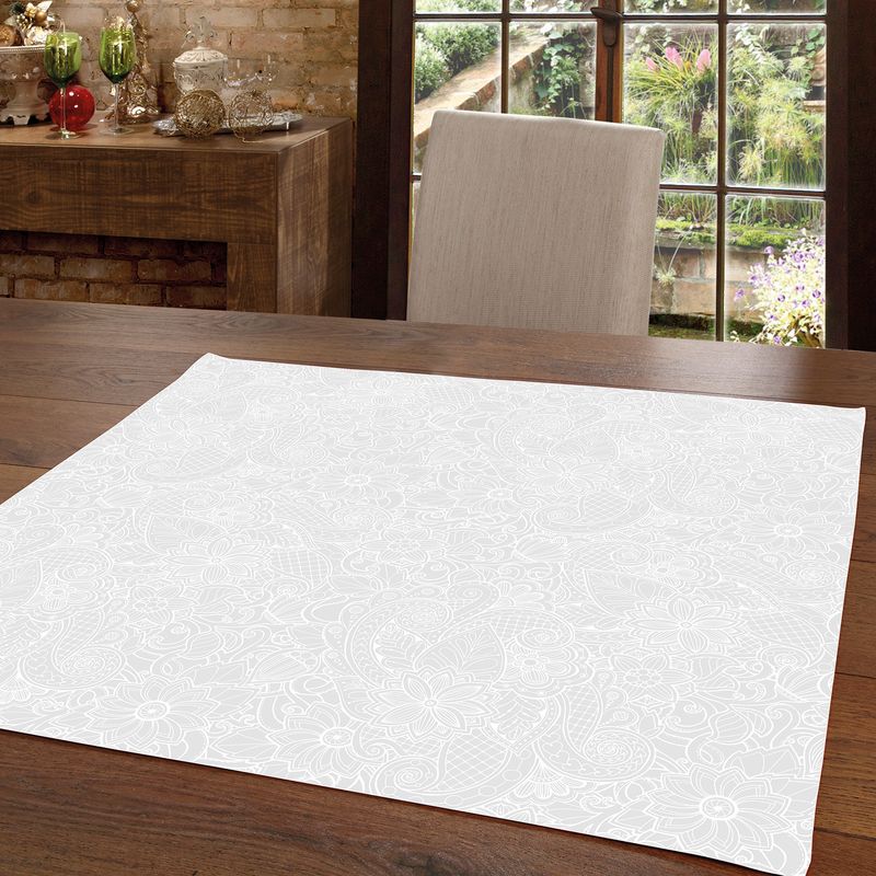 Embalagem Composta por: 01 (uma) Toalha e Centro de Mesa Döhler Clean Edite Branco 78x78cm.