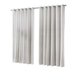 A cortina é confeccionada em uma composição durável de 66% Algodão e 34% Poliéster, com uma gramatura robusta de 352 g/m². O acabamento em ilhós cromado garante um deslizar suave no varão, um caimento impecável e adiciona um toque moderno e sofisticado.