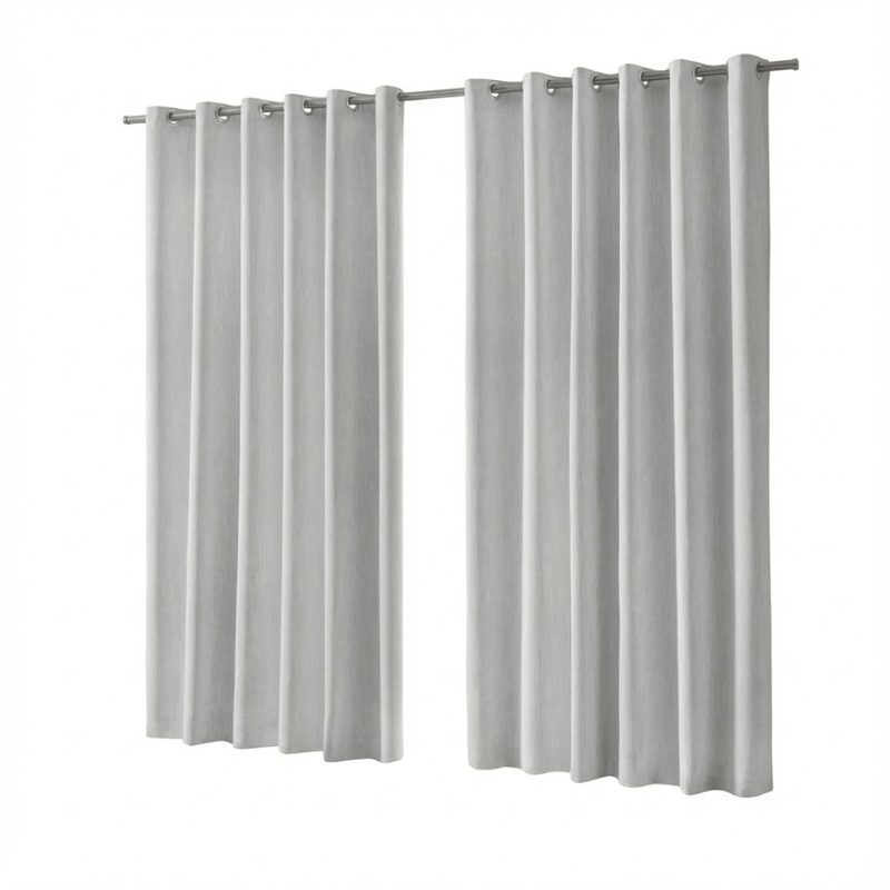 Confeccionada com uma composição de 66% Algodão e 34% Poliéster, a cortina possui uma gramatura de 202 g/m², oferecendo ótimo caimento. Ela também bloqueia e protege contra os raios UV e as luzes. O acabamento com ilhós cromado facilita a instalação em varão de até 4,00 m e confere modernidade à peça.