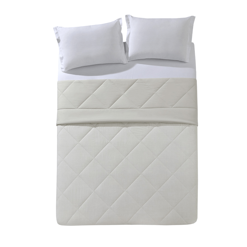 Seu acabamento matelassado - uma técnica de costura que une as camadas de tecido e forma um padrão acolchoado - adiciona um toque sofisticado e elegante à peça. A característica dupla face oferece versatilidade, com duas opções de visual que se adaptam facilmente à sua decoração. A estampa texturizada na frente da peça, e o verso unicolor trazem leveza e tranquilidade para o ambiente, tornando-o mais convidativo.