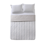 Seu acabamento matelassado confere um visual elegante e sofisticado à peça. A característica dupla face oferece versatilidade com duas opções de visual que se adaptam perfeitamente à sua decoração: a estampa Lorenzo, um moderno padrão listrado na frente, e o verso unicolor que traz um toque extra de leveza e tranquilidade para o ambiente.