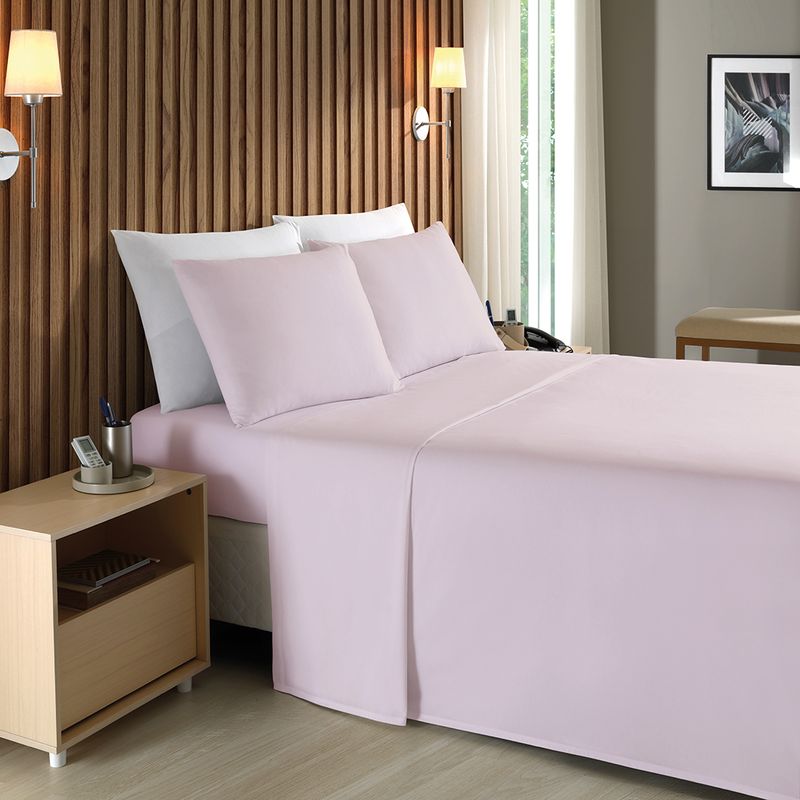 Este jogo é fabricado com uma composição de 50% Algodão e 50% Poliéster com 140 fios. Essa combinação garante um tecido resistente ao desgaste e ao encolhimento, prolongando a vida útil das peças.