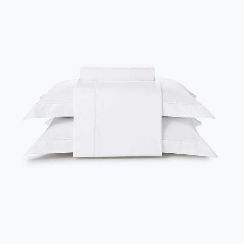 O conjunto Olímpia se destaca pela durabilidade do fio penteado e pela maciez do percal. Os acabamentos, como o bordado e a pala no lençol, dão o toque de elegância perfeito.