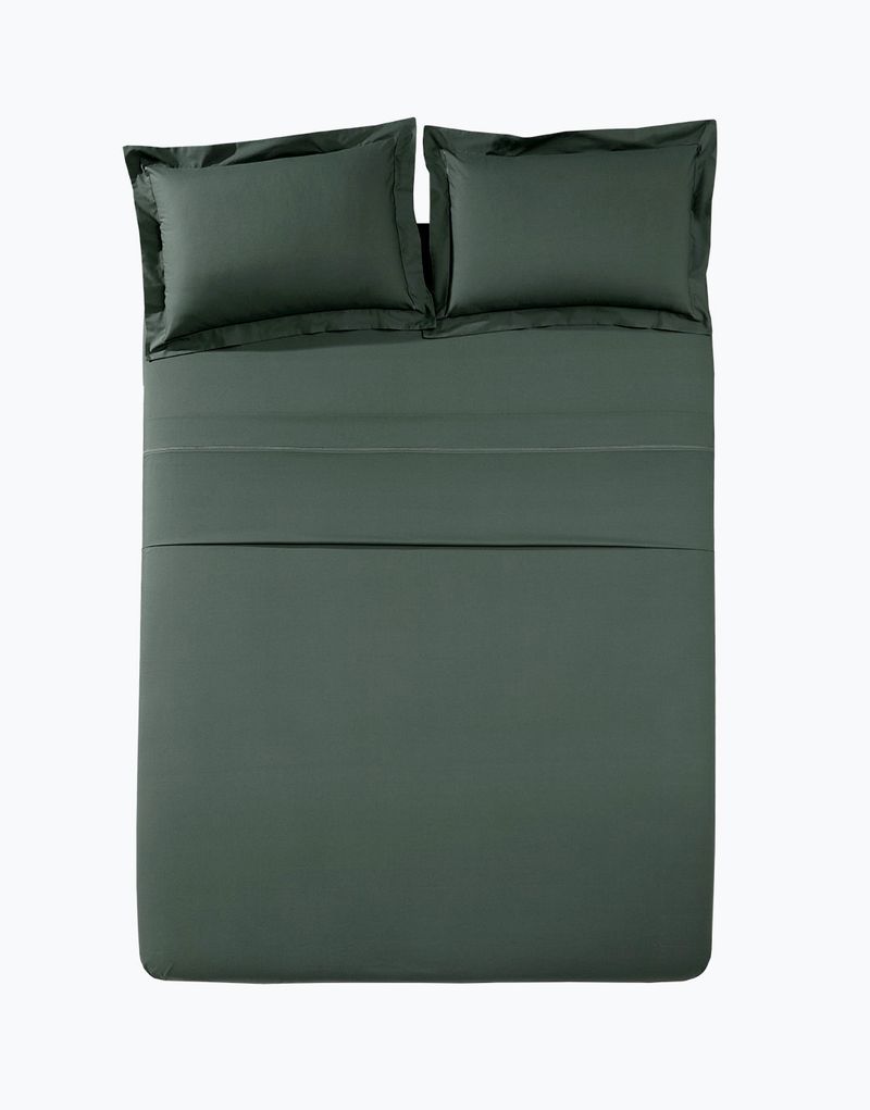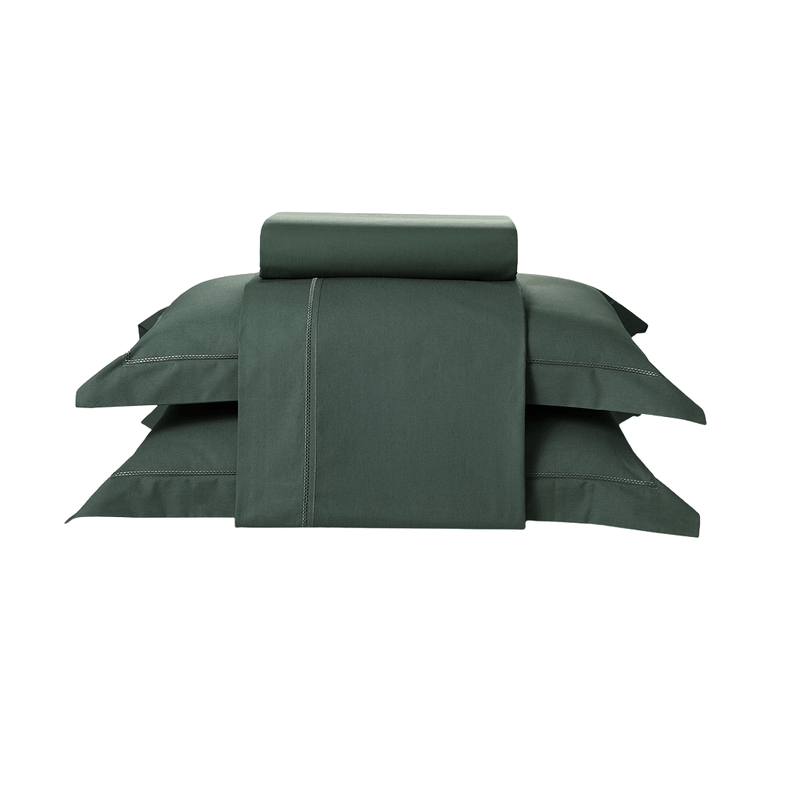 O conjunto Olímpia se destaca pela durabilidade do fio penteado e pela maciez do percal. Os acabamentos, como o bordado e a pala no lençol, dão o toque de elegância perfeito.