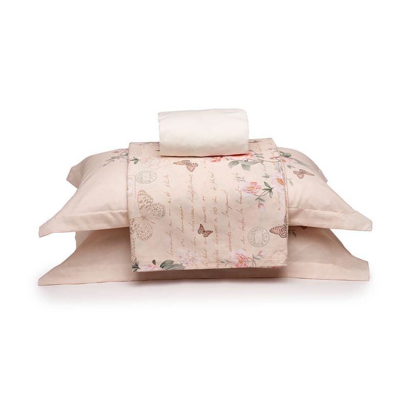 Jogo de lençol para cama em tecido 180 fios, 100% algodão, fio penteado, de toque agradável e encorpado, em estamparia digital eco responsável. O lençol de cima possui fino acabamento as fronhas têm estampa localizada com 3 abas laterais. O lençol de baixo é com elástico e de cor sólida. 110 g/m² Tamanho: 250cmx270cm / 158cmx198cmx40cm / 70cmx50cm Queen.