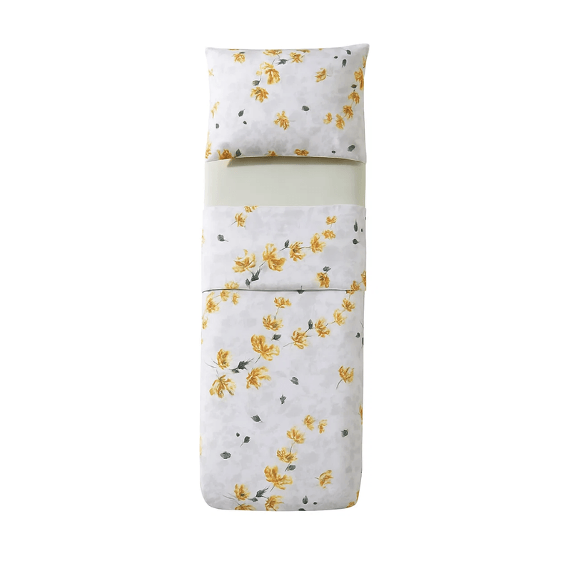 O Jogo de Cama Solteiro Döhler Jasmine é uma opção inteligente e funcional para renovar seu quarto, oferecendo a durabilidade que você precisa no dia a dia. A estampa Jasmine apresenta um alegre padrão floral de flores em tons de amarelo e folhas verdes sobre um fundo suave e claro, criando um visual vibrante e acolhedor.