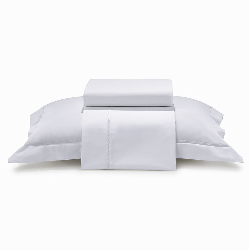 O conjunto Olímpia se destaca pela durabilidade do fio penteado e pela maciez do percal. Os acabamentos, como o bordado e a pala no lençol, dão o toque de elegância perfeito.