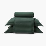 -100% Poliéster, para maior resistência e durabilidade; -120g/m de gramatura; -Dupla face e acabamento bordado; -Porta Travesseiro com 4 abas de 5cm; -Possui 3 (três) peças.