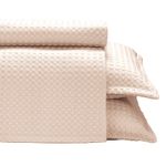 O Kit Colcha Casal Döhler Provença na cor Bege possui 3 peças, sendo elas: uma bela colcha tamanho queen e dois porta travesseiros. A composição deste kit colcha é de 100% poliéster, o que garante uma sensação de leveza. A gramatura de 260 g/m² contribui para o acabamento leve do produto.