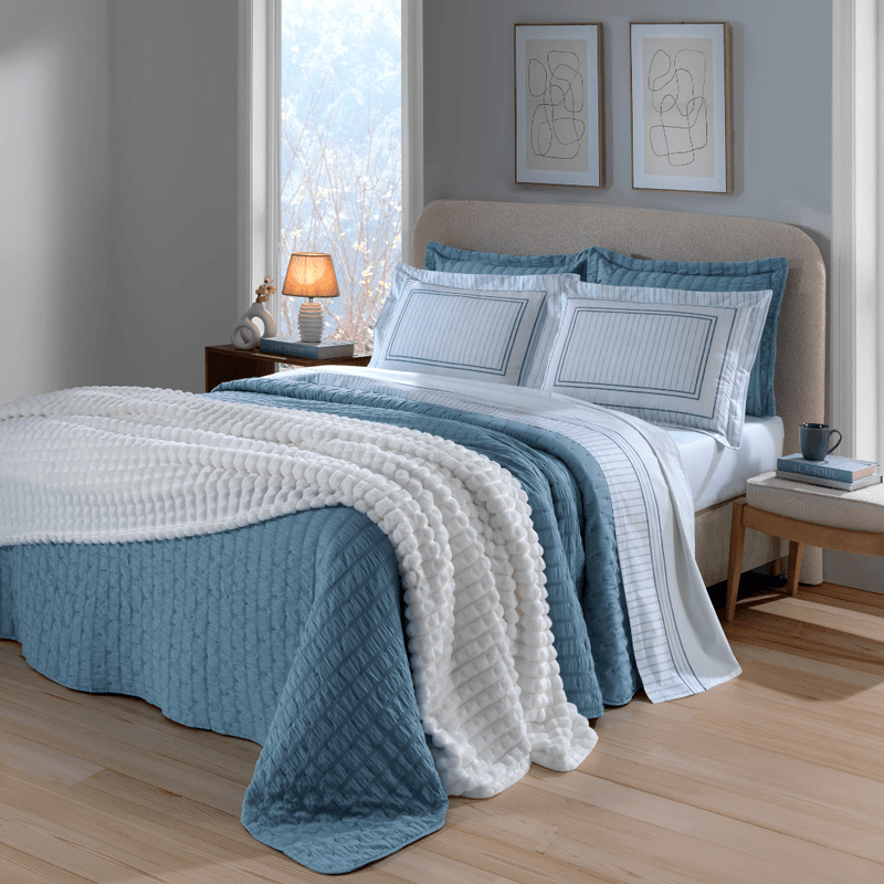 Kit Colcha Solteiro Döhler Doris Azul 2 Peças: Estilo e Praticidade com Efeito Anarruga