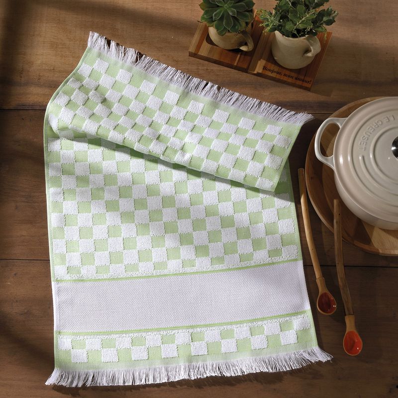 O Pano de Prato da linha Verona xadrez verde é um produto desenvolvido especialmente para a área do artesanato. Ele é fabricado com 100% de algodão e possui uma gramatura de 325 g/m², o que torna um produto macio e absorvente. O pano de prato apresenta uma barra para bordar com altura de 40 pontos, tornando-o ideal para a criação de peças personalizadas.