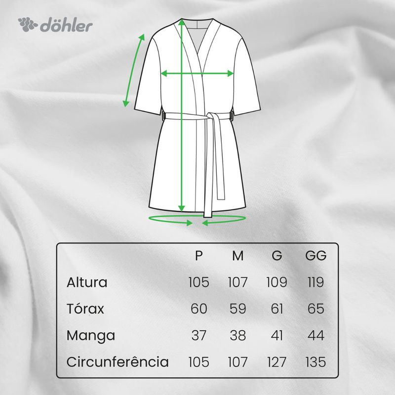 - Observação: As medidas do roupão são aproximadas e podem variar em até 5%.