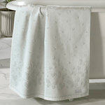 Esta toalha é produzida com a técnica jacquard, um tipo de têxtil que entrelaça os fios para criar os padrões e relevos diretamente no material, em vez de serem impressos. Este processo resulta em um design romântico, elegante e único. Confeccionada em 100% Algodão e com uma gramatura de 400 g/m, a toalha possui um acabamento felpudo aveludado que garante uma experiência de maciez e absorção excepcionais após o banho.
