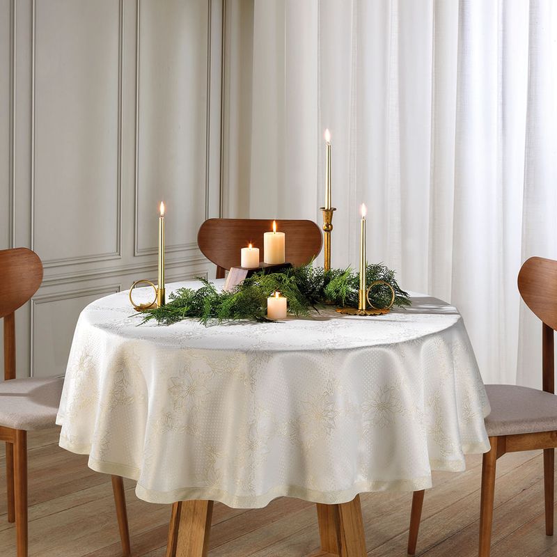 Toalha de Mesa Redonda Döhler Lumina II Marfim 4 Lugares 1,60m: Elegância Clássica para Sua Mesa!