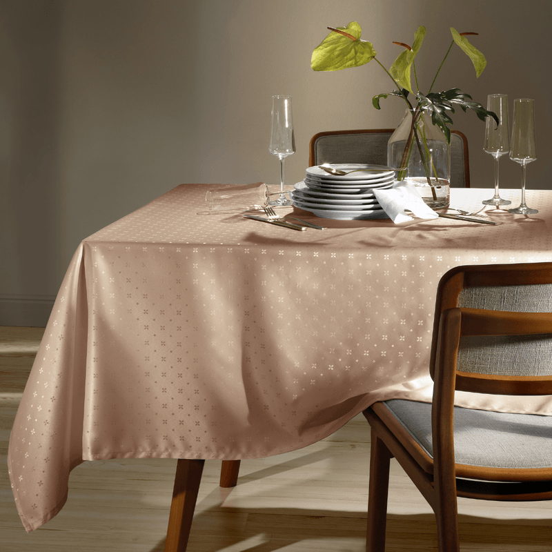 Toalha de Mesa Retangular Döhler Requinte Cindy Marrom Claro: Sofisticação e Praticidade para sua Mesa (140x210cm)!