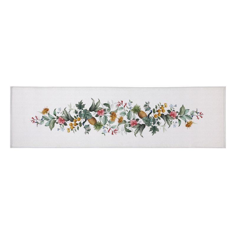 - Design floral: estampa digital exclusiva com flores e folhagens em cores vivas, que valorizam a mesa e combinam com diferentes estilos de decoração;